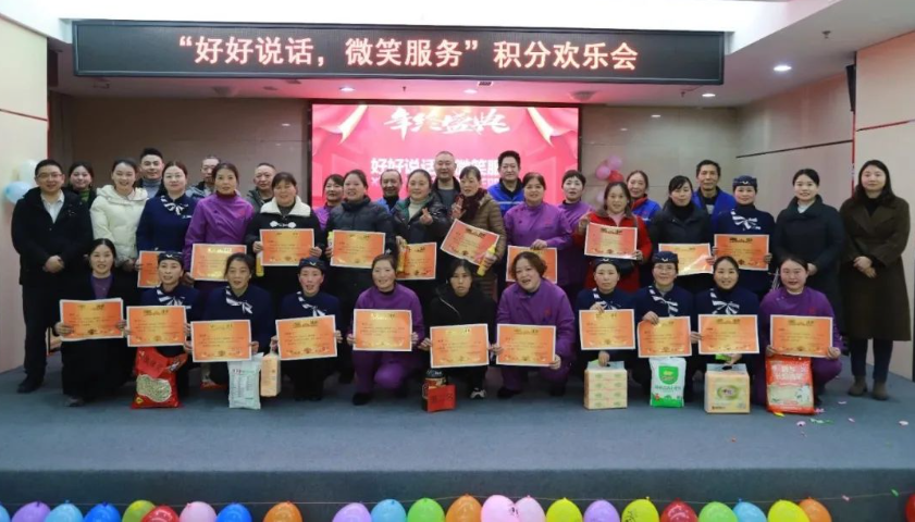最后,所有人员合影留念,记录下了这珍贵的一刻。此次“好好说话,微笑服务”年终积分快乐活动,不仅丰富了员工的业余文化生活,还为新一年的工作注入了新的活力。