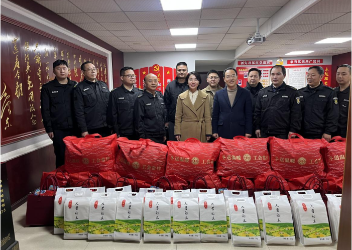 1月16日下午,区委常委、政法委书记丁晓勇前往马房坝社区、交警一大队开展送温暖慰问活动,向始终坚守岗位一线的职工送上大米、礼包、棉被等慰问品,致以节日的祝福和诚挚的问候,并嘱托在工作的同时要注意防寒保暖。