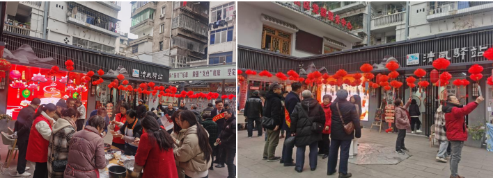 “汤圆”与“团圆”二字谐音,象征着团团圆圆,在元宵节吃上一碗元宵,代表着新的一年家庭和和美美、日子越过越红火。“快来吃元宵呀,热乎的元宵嘞!”和糯米粉、拌馅料、分装摆盘……大家一边包一边煮,热火朝天地张罗着,一个个小巧玲珑、做工精致的元宵煮好,不断向来往的居民分发,将一份份温暖和祝福传递给大家。大家猜着灯谜,吃着元宵,脸上流露出幸福的笑容。