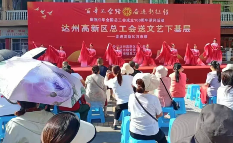 为热烈庆祝中华全国总工会成立100周年,传承百年工运精神,凝聚高新奋进力量,近日,达州高新区总工会开展了“百年工会路 奋进新征程”送文艺下基层暨庆祝中华全国总工会成立100周年系列活动,吸引了2000余名群众观看。