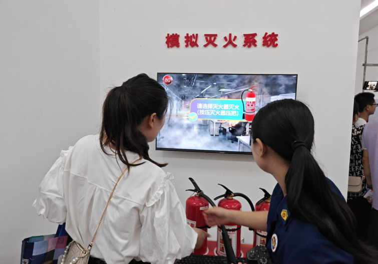 (图为使用灭火器进行模拟灭火)