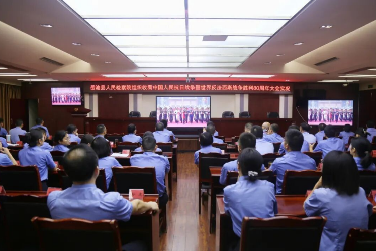 9月3日上午,岳池县人民检察院组织全院干警100余人集中观看纪念中国人民抗日战争暨世界反法西斯战争胜利80周年阅兵仪式盛况。