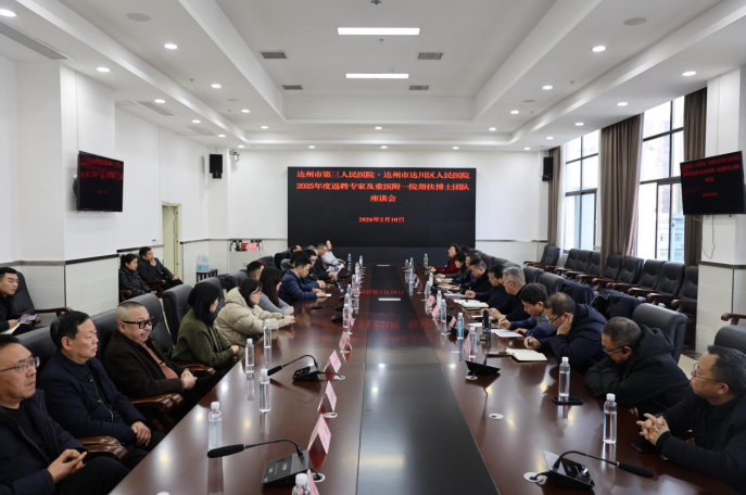 为凝聚医院退休返聘专家与重医附一院帮扶博士团队的智慧力量,助力医院2026年高质量发展,2月10日下午,达州市达川区人民医院组织召开2025年度退休返聘专家暨重医附一院帮扶博士团队座谈会。医院领导班子,退休返聘专家,重医附一院帮扶博士团队成员及相关科室负责人齐聚一堂,共话发展、共谋新篇。