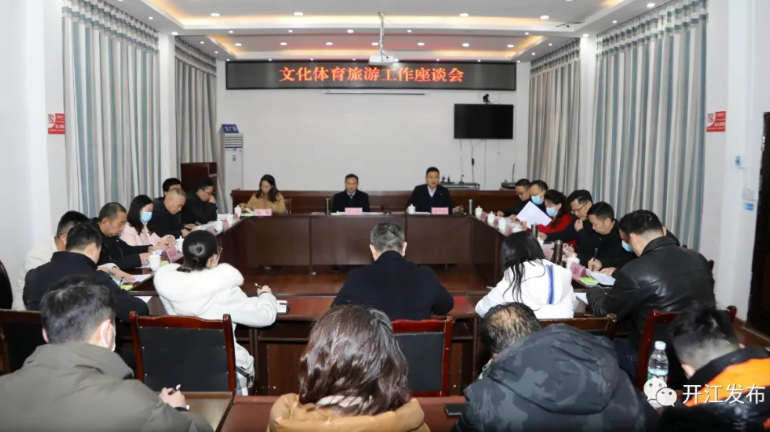 开江县委常委、宣传部部长余学海汇报了2022年文化体育旅游工作谋划及文旅重点项目推进等情况;文体旅游局相关负责人就我县文广旅体工作基本情况、目前存在的问题困难以及下一步工作计划等内容作详细汇报;与会人员结合各自的工作领域,就如何推动我县文化体育旅游工作持续向前发展作交流发言。