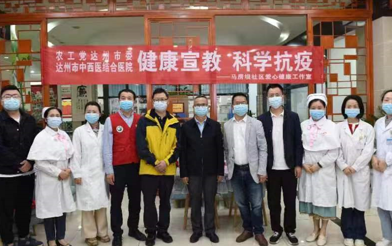 4月21日,农工党达州市委联合市中西医结合医院以“健康宣教、科学抗疫”为主题,在通川区马房坝社区开展爱心医疗服务进社区活动。达州市政协副主席、农工党达州市委主委蒲春天,副主委张小飞、秘书长王春来参加。