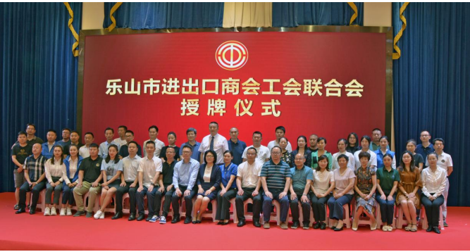 5月31日,乐山市进出口商会举行工会联合会和关心下一代工作委员会成立授牌仪式,市工商联副主席李静以及来自市总工会、市关工委等相关部门负责同志出席仪式,共同见证了乐山市进出口商会工会联合会和关心下一代工作委员会的成立。