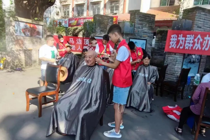 “叔叔,我手艺怎么样?看我剪的帅不帅?”“帅得很,谢谢小伙子。”志愿者耐心地帮老人围上围裙,推剪、碎剪齐上阵,一边理发一边和老人唠家常,充分发挥自己的技艺,利用手中飞舞的剪刀,为群众修剪头发。没有花哨的造型却“剪”出了大家的笑容,同时也“剪”出了对老年人的关爱。经过一番修剪,换了个发型的老人更显利落、精神、干净。
