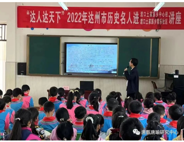 据悉,达州历史名人“进校园、进机关、进社区”活动是市委宣传部牵头开展的2022“达人达天下”达州历史名人系列传承活动的重要内容之一,具体由市直机关工委、市教育局、市巴文化研究院等单位承办。接下来,活动还将在全市范围内的部分学校、机关、社区陆续开展。