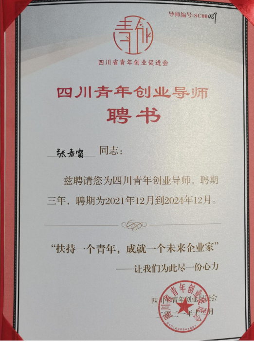 日前,四川省青年创业促进会聘请全国农村青年致富带头人,四川省劳动模范、当代工匠、四川天王牧业有限公司董事长张春雷为“四川青年创业导师”。