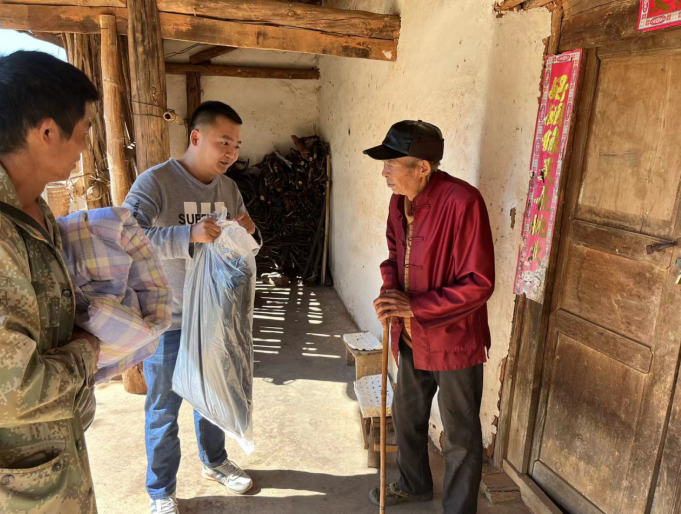 (图为:驻村工作队看望困难群众)