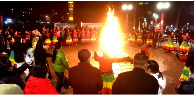 1月18日晚7时,自治县老体协文化艺术分会舞蹈队队员们,与彝族舞蹈协会、模特协会的会员们一道,在南门桥法治广场、光明社区旱喷广场举行篝火晚会,带领群众欢跳彝族达体舞,各族群众共庆兔年新春,让外地游客感受彝乡风情。此活动将持续到1月25日晚。