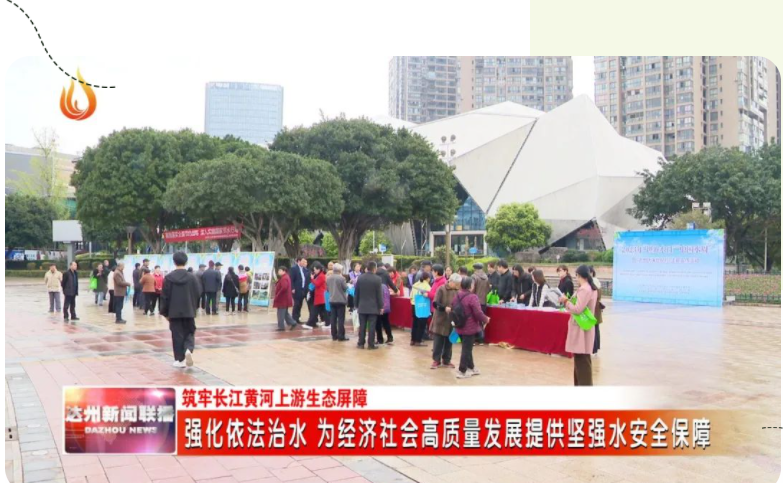 强化依法治水、携手共护母亲河。3月27日,2023年“世界水日”“中国水周”暨“达州环保世纪行”主题宣传活动在达城人民广场举行,向市民展示治水成果,宣传普及水环境保护、水利安全生产、水资源管理、河湖管理、农村供水、水土保持、水旱灾害防御知识和涉水法律法规等。