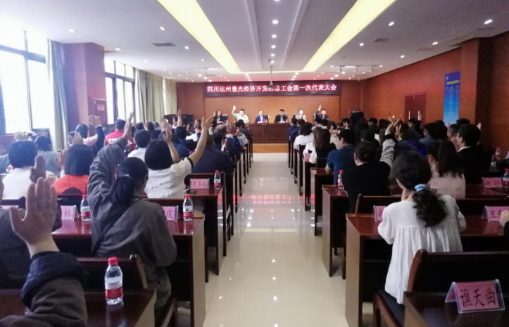 会议在嘹亮的国歌声中拉开序幕,来自经开区机关、企业、等基层各条战线的103名代表参加会议。会上,宣读了县总工会《关于同意四川达州普光经开区第一届总工会选举的批复》文件,报告了大会筹备工作及代表资格审查情况,通过了大会选举办法。