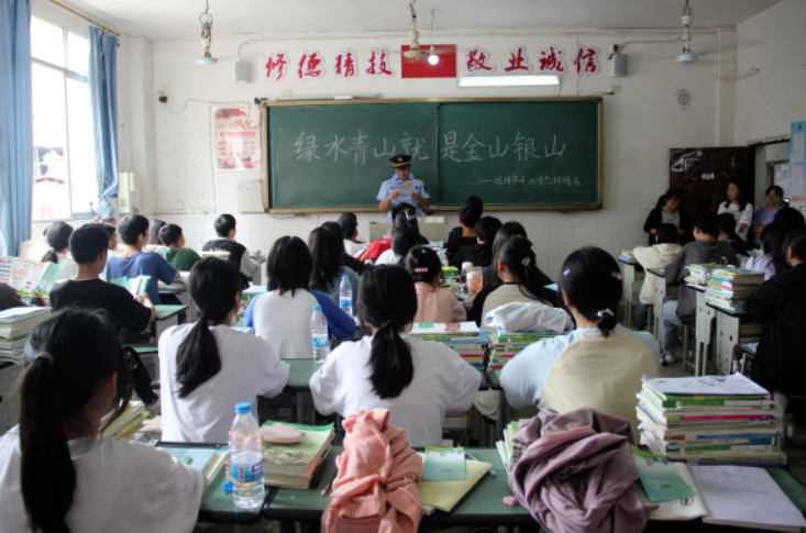 为深入学习贯彻习近平生态文明思想,培养和提升青少年生态环境保护意识和责任感,6月8日,达州市开江生态环境局到开江县职业中学开展了习近平生态文明思想“进学校”宣传活动。 活动中,工作人员通过环保主题宣讲、悬挂横幅的形式,从中华民族历来尊重热爱自然、生态系统蕴含巨大价值、生态环境现状等几个方面详细阐述了为什么要搞生态文明建设,让同学们从具体案例中更加深入体会到习近平生态文明思想的深刻内涵及保护生态环境的重要性,并引导同学们牢固树立绿水青山就是金山银山的绿色发展观,养成绿色低碳、节能环保、从我做起、从身边小事做起的良好生活习惯。
