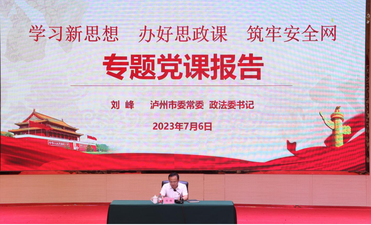7月6日,泸州市委常委、政法委书记刘峰到四川三河职业学院检查指导工作并作专题党课报告,学校理事长王文潇、党委书记叶昌伦等校领导及全校教职员工现场聆听党课报告。