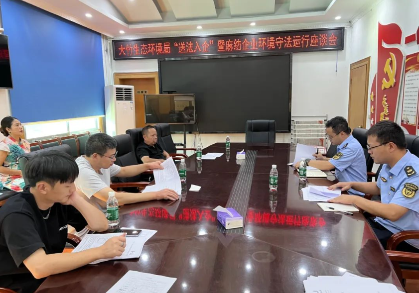 为更好地推动“绿色发展”理念进企业,按照“谁执法谁普法”的工作要求,9月15日,达州市大竹生态环境局组织召开了“送法入企”暨麻纺企业环境守法座谈会。大竹县金桥麻业有限责任公司、大竹县麻业有限公司和四川玉竹麻业有限公司脱胶分厂的环保负责人参会。