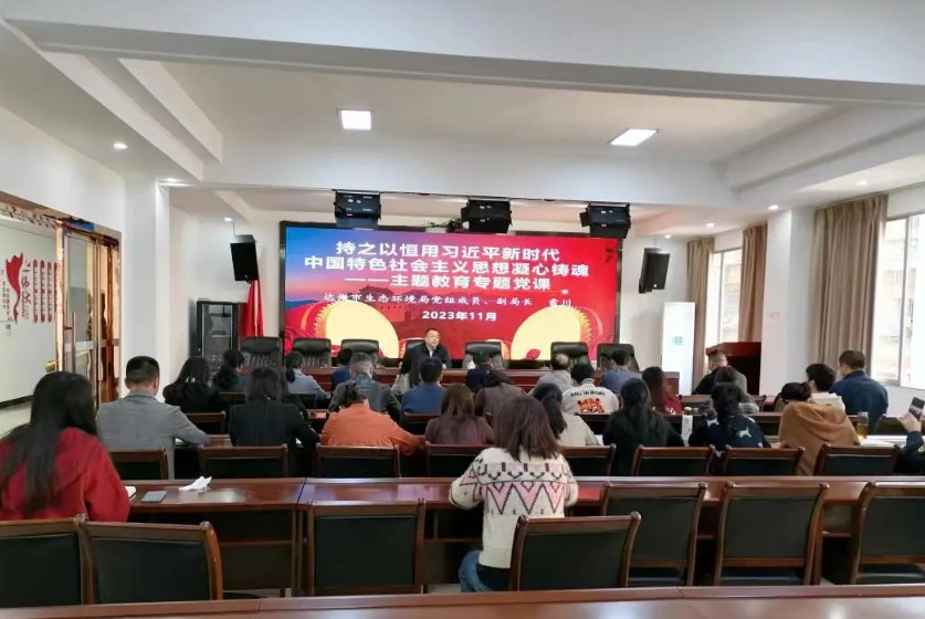 为推进学习贯彻习近平新时代中国特色社会主义思想主题教育走深走实,按照主题教育专题党课要求,11月6日下午,达州市生态环境局党组成员、副局长雷川以《持之以恒用习近平新时代中国特色社会主义思想凝心铸魂》为题,结合当前主题教育集中学习研讨的体会为达川生态环境局党员干部讲授主题教育专题党课。 雷川指出,主题教育是统一全党思想意志行动、始终保持党的强大凝聚力、战斗力的必然要求,是推动全党积极担当作为、不断开创事业新局面的必然要求,是深入推进全面从严治党、以党的自我革命引领社会革命的必然要求,大家务必要深刻领悟开展主题教育的重大意义。 雷川要求,筑牢理想信念根基,深化党风廉政建设,重视干部选育培用,在“以学铸魂、以学增智、以学正风、以学促干” 方面取得实效。