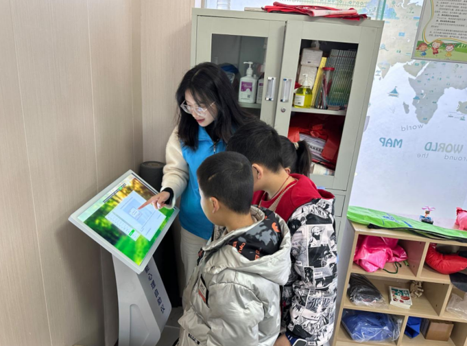 (杨家镇青年志愿服务队员使用心理自助仪对儿童进行性格测试)