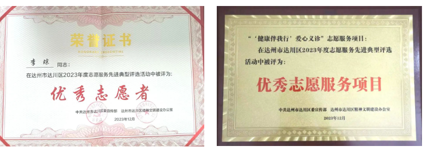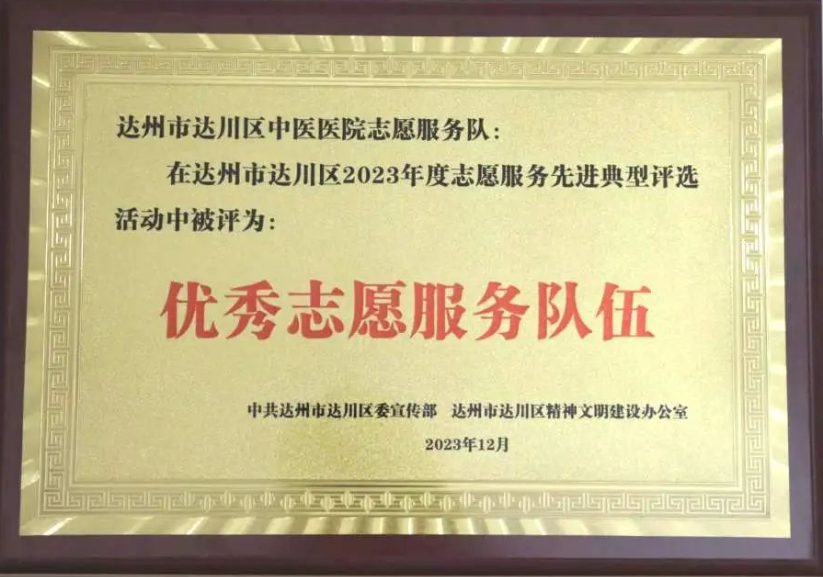 祝贺!达川区中医医院志愿队、志愿项目、志愿者荣获区级表扬