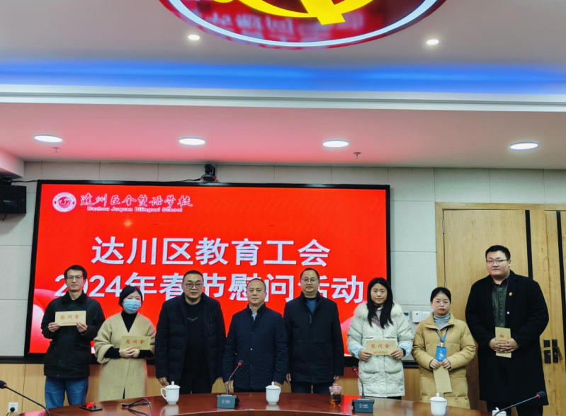 近日,达州市达川区教育工会、民办学校工会联合会深入耀华学校、巨全学校、东辰学校、华英学校开展 2024年春节慰问活动,为困难教职工、一线教师送去关心、关爱、关怀。