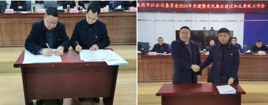 会上,公司党委与党支部书记代表现场签订了2024年度党建工作、党风廉政建设和信访稳定工作目标责任书。