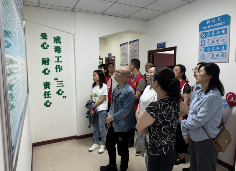 在工作站,工作人员向大家详细介绍了毒品常识、毒品危害、禁毒法律法规以及毒品防范等相关知识,观看了图文并茂的画展及宣传资料。展厅内播放着打击毒品的短视频,让参观者充分认识到毒品对个人、家庭、社会,乃至民族、国家的危害。