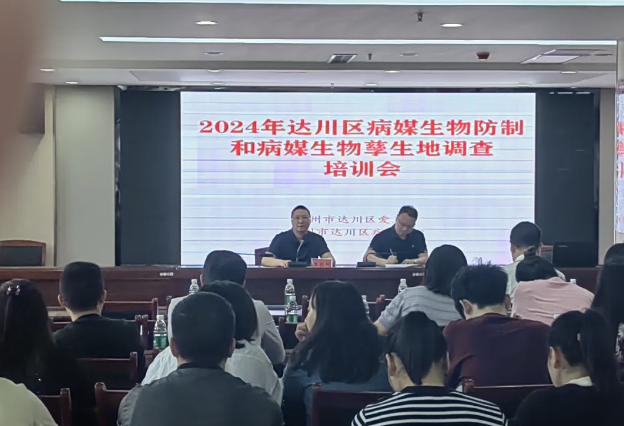 为深入推动2024年达川区病媒生物防制工作,普及病媒生物防制技术,改善城乡人居环境,夯实国家卫生城市创建基础。5月9日,区爱卫办在区疾控中心12楼会议室,组织召开了“2024年达川区病媒生物防制和病媒生物孳生地调查培训会”,此次培训邀请市创卫办副主任刘明军、区疾控中心周思佳等进行授课,会议由区卫健局副局长王敬轩同志主持。翠屏、三里坪、杨柳街道分管领导、建成区各社区(村)主要负责人共计50余人参加。