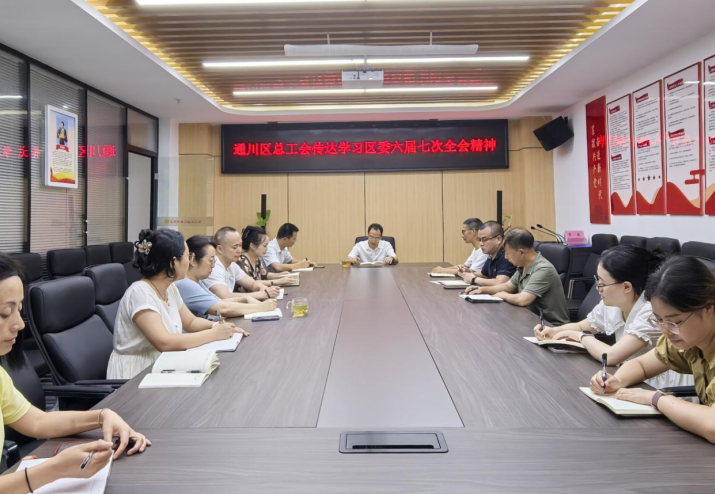7月25日下午,达州市通川区总工会召开专题会议,传达学习通川区委六届七次全会精神并研究贯彻落实措施。会议由区总工会党组书记、副主席李良主持,区总工会干部职工参加会议。