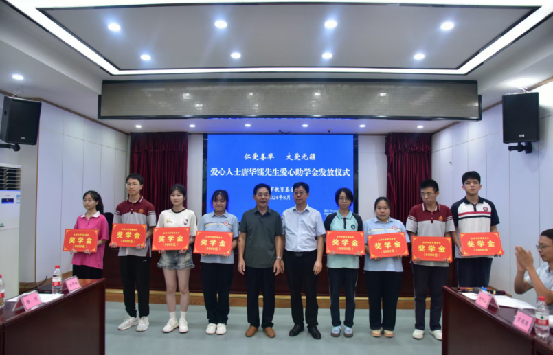 唐华镭先生祝贺各位优秀学子取得优异成绩,考入理想大学。他指出,我们发放的不单是一份奖助金,蕴涵的是一份爱心、一份期待。希望受助学子继续勤奋学习、刻苦钻研,争取学有所成、学有所获,毕业后回报父母、回报家乡、回报社会、回报祖国!