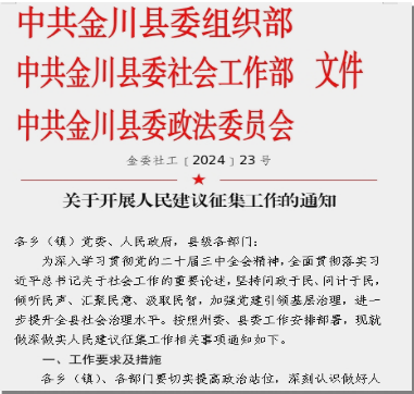 金川县委、县政府高度重视人民建议征集工作,不断拓展征集渠道,提升群众参与度,发挥群众智慧,让群众的“金点子”变成社会治理的“金钥匙”,全力推动共建、共治、共享的社会治理新格局。
