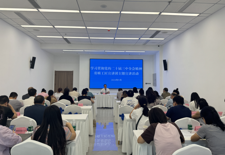 为深入学习贯彻党的二十届三中全会精神,充分发挥劳动模范示范引领作用,切实将党的二十届三中全会精神传递到一线职工身边,9月24日下午,达州市五一劳动奖章获得者、区总工会党组书记、副主席李良在达州市工人文化宫宣讲党的二十届三中全会精神。来自全区各乡镇街道、经开区总工会,莲花湖景区工会,行业工会,局工委,部分企业工会干部共计40余人齐聚一堂聆听宣讲。