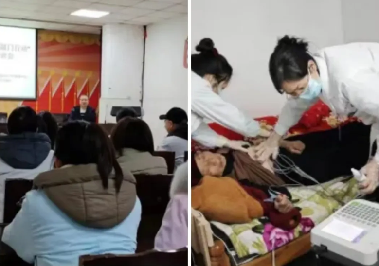 为传递党和政府对失能老年人的关心关爱,提高失能老年人的生活质量,满足失能老年人健康服务需求,中心持续推进失能老年人“健康敲门行动”,一是家庭医生团队人人参加失能老人“居家照护该咋做”能力提升培训,熟悉掌握不同类型的失能老人需要有针对性的如坐起训练、偏瘫肢体综合训练、跌倒/坠床预防健康风险指导及压力性损伤预防、护理指导等操作指导内容;二是在敲门入户做好“健康敲门行动”基本服务包的同时,主动开展健康服务增量,为失能老人免费提供血压血糖检测、B超心电图等“上门辅助检查服务”,并根据检查结果提出健康建议,尽可能满足老年人更多个性化健康需求,据统计,中心已累计服务失能老年人596人。