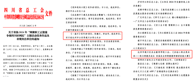 喜报!2024年“网聚职工正能量 争做中国好网民”主题活动通川区获得表扬!