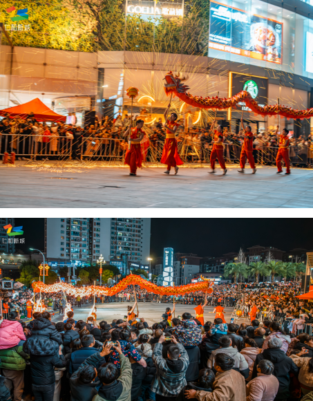 舞火龙不仅是一种艺术形式,还承载着深厚的文化内涵,更寄托着人们对风调雨顺、五谷丰登的祈愿,以及对家庭和睦、社会安宁的美好向往。晚上7点,达州人民带着对传统文化的热爱与执着,不约而同聚集在达州市仁和新城外广场,等待着金龙闹元宵的非遗舞龙表演。