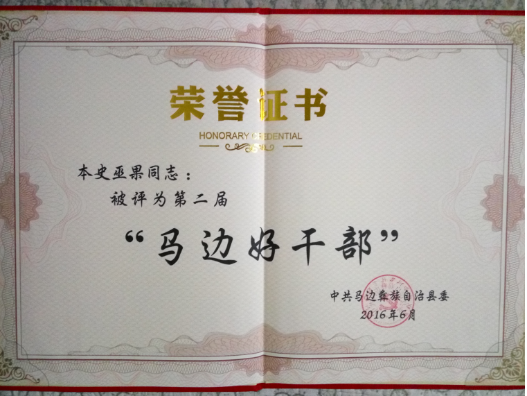 巫果老师是彝乡“孺子牛”的代表,是马边好干部的典范,在不同的工作岗位辛勤耕耘,以无私奉献的精神对待每一天的工作,数十年如一日,用赤子情怀为生命奏响了最动听的音符,为马边的教育及新闻宣传事业作出了积极的贡献。他用实际行动感染了身边的每一个同事,留给了同事、单位、彝乡宝贵的精神财富。