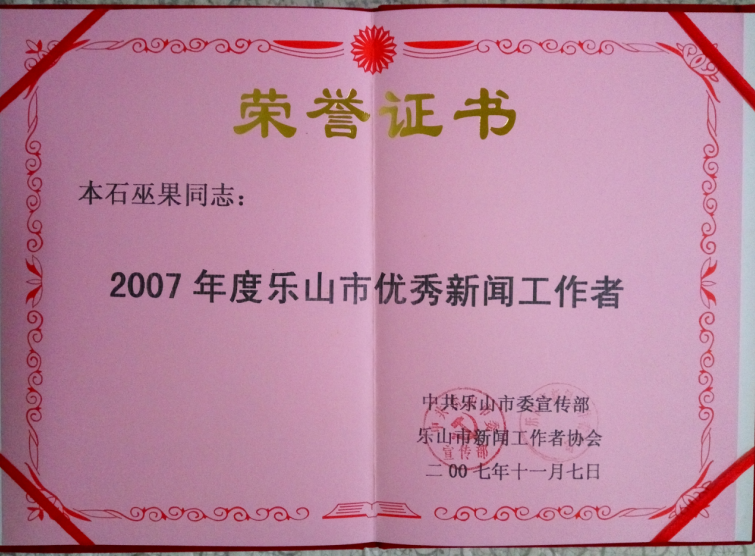 巫果老师从事新闻写作,可追溯至读师范校时,在中师和大学时,他曾是校园之声广播站的通讯员,在大学时每期获优秀通讯员称号。在教育系统工作时,负责过苏坝中学校园之声广播站,是县广播电台和教育信息通讯员,经常向乐山日报、乐山广播电台、马边民族报、马边广播电台、县教育局投稿,并多次被评为优秀通讯员,受县委宣传部、县广播电视局、县教育局的表彰。