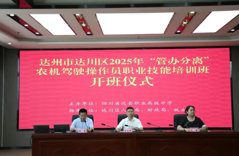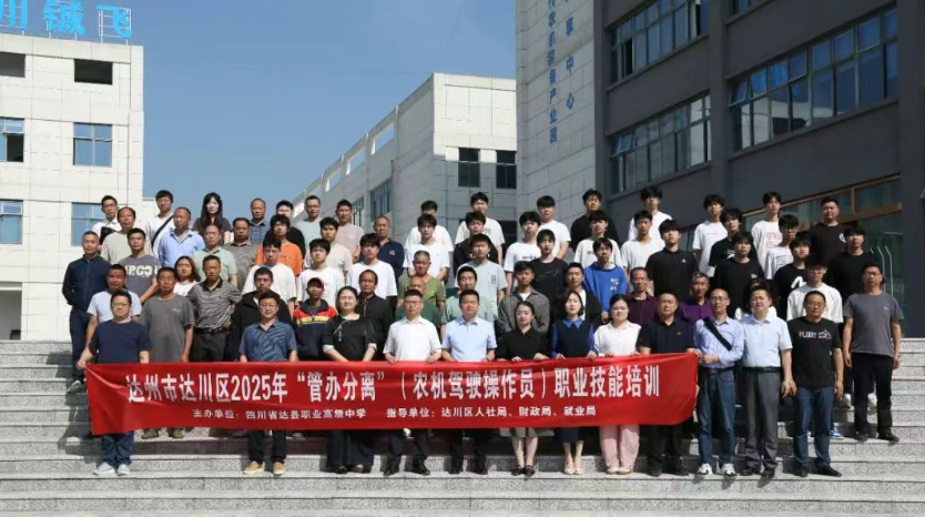 农机培训进乡村 科技兴农有能人 ——达川区2025年农机驾驶操作员职业技能培训正式开班 为深入贯彻落实农业机械化发展战略,提升农机操作人员专业技能水平,助力乡村振兴与现代农业高质量发展,5月7日,由四川省达县职业高级中学主办,区人社局、教育局、财政局、就业局、产业新区管委会指导的“达川区2025年‘管办分离’农机驾驶操作员职业技能培训”在丘陵山区现代农机装备产业园培训中心正式开班。达川区人民政府副区长龙忠诚出席本次开班仪式,相关指导单位和赵家镇、百节镇有关领导出席,开班仪式由达县职高党委书记杨勇主持。来自周边乡镇的60余名农机驾驶操作员、农机合作社技术骨干及农业种植大户参加培训。 一、锚定目标:开班仪式擘画新蓝图 开班仪式上,区人社局副局长王妮介绍了本次培训背景。随后,副区长龙忠诚立足区域农业现代化发展大局,对产业园的战略价值与培训目标进行了深度阐释。龙忠诚强调,达川区丘陵山区现代农机装备产业园是“全国首家、西南唯一”的丘陵山区农机产业园,园区重点研发微型旋耕机、自走式履带机等设备,具备强抓地力、防侧翻和高爬坡性能,适配坡度大、地块破碎的丘陵地形。龙忠诚指出,本次培训将强化我区丘陵山区现代农机人才培训,希望参训学员以“学”强本领,争做现代农业的“技术标兵”;以“责”保安全,筑牢农业生产的“生命防线”;以“新”促发展,勇当乡村振兴的“创新先锋”;成为“懂技术、保安全、能创新”的农机骨干力量。 二、课程聚焦:实战导向赋能技能升级 本次培训为期15天,围绕“理论+实操+案例”三维教学模式展开。 政策法规与安全教育:解读农机补贴政策、年检流程及安全操作规范,强化法律意识。 农机操作与维护技术:现场演示拖拉机、旋耕机等设备的驾驶调试、故障诊断及日常养护。 智能农机应用:引入北斗导航、无人植保机等智能化装备操作培训,适配丘陵地形作业需求。 应急演练与案例分析:通过模拟农机侧翻、设备故障等场景,提升突发状况处置能力。 三、学员反响:学以致用激发新动能 培训首日,参训学员积极投入学习,对课程内容高度认可。培训学员表示:专家讲解的故障排查方法非常实用,过去遇到收割机卡顿只能停工送修,现在自己就能动手解决,省时又省钱!培训学员感慨:以前觉得农机操作就是“会开就行”,这次培训让大家识到规范操作和安全意识的重要性。特别是智能农机的演示,让我对现代农业有了新认识。 四、长效赋能:以训促产助力乡村振兴 据悉,培训结束后,学员通过考核将纳入区农机人才库,优先推荐至农业合作社、农机服务队就业。达县职高相关负责人表示,后续将开展“田间回访”跟踪指导,确保技术落地见效,为达川区农业机械化、智能化发展提供技术人才支撑。