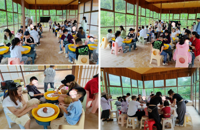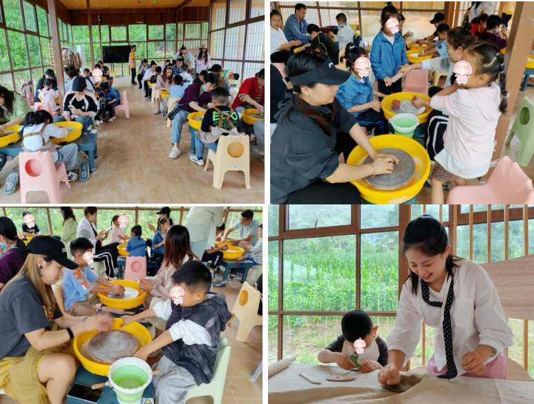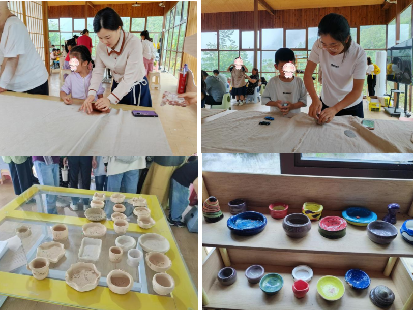 随后,在专业老师的悉心指导下,家长和孩子们开启了一场充满创意的陶艺DIY之旅。家长与孩子默契配合,大手覆小手,将陶泥一点点拉高、塑形。在一次次的失败与尝试中,孩子们感受到了指尖与泥土奇妙互动的乐趣,完全沉浸在自己的创意世界里。经过一番努力,一件件凝聚着亲子间满满爱与陪伴的独一无二的陶艺作品诞生啦!孩子们兴奋地举起自己的作品向大家展示,家长们也纷纷竖起大拇指,为孩子们的创意点赞。