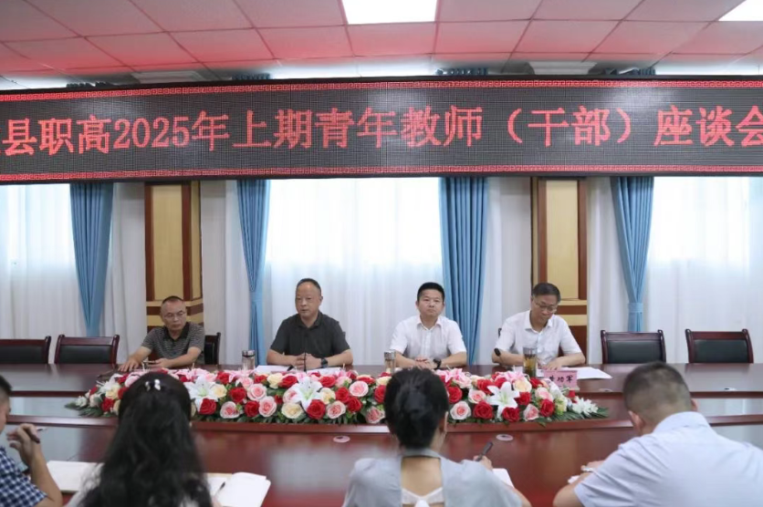 7月7日下午,四川省达县职业高级中学在行政会议室举行 2025 年上期青年教师、干部座谈会,活动以 “共话成长 赋能未来”为主题,学校80 后科级以上干部及 35 岁以下青年教师参会,会议由党委副书记、校长胡泰然主持。 座谈会上,00 后教师代表叶浩然结合新教师视角,分享了对职业的理解、融入学校的感受及教学创新尝试,展现了新生代教师的活力与想法;90 后教师代表王梦辉围绕入职后的教学实践、职业困惑、成长感悟及对学校发展的建议进行交流,体现了其在教学中的探索与思考;80 后青年干部代表李绍荭则从管理岗位出发,分享了与青年教师的协作经验、助力青年教师成长的思路,以及在学校管理与教学融合中的思考。