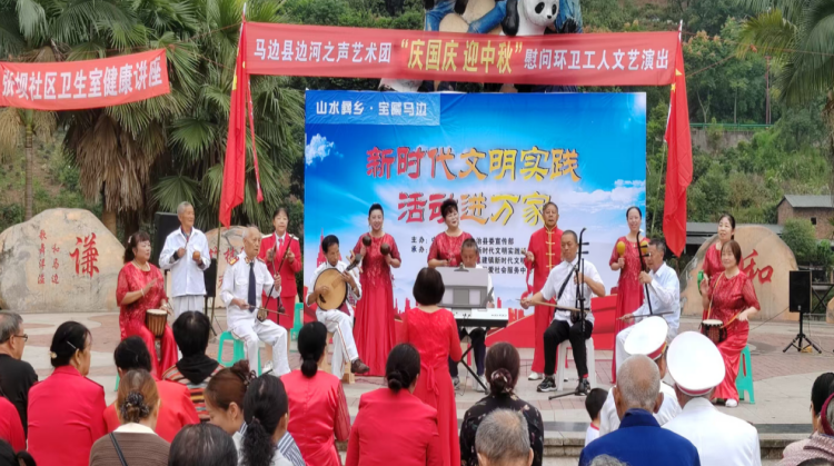 金秋送爽,丹桂飘香。9月27日,马边张坝熊猫广场,座无虚席,热闹非凡。马边新时代文明实践活动进万家暨马边老体协边河之声分会“庆国庆 迎中秋”慰问环卫工人文艺演出在此隆重举行。