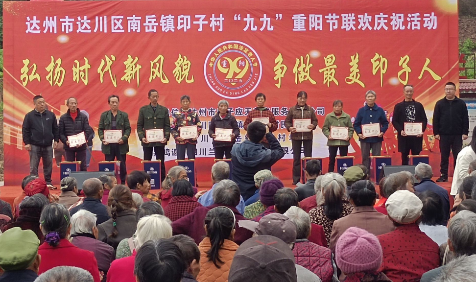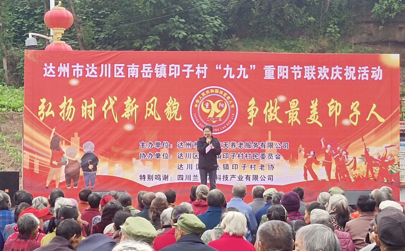 岁岁重阳添暖意,寸心敬老寄深情。为弘扬尊老敬老传统美德,营造孝亲爱老社会风尚,正值九九重阳,10月29日,达川区南岳镇印子村“两委”联合达州市应子应天养老服务有限公司、南岳镇印子村老年人协会、四川兰德高科技产业有限公司,共同举办“弘扬时代新风貌 争做最美印子人”主题敬老活动,以文艺演出、暖心慰问、敬老宴等形式,为村内老年人送上节日的祝福,传递浓浓温情。