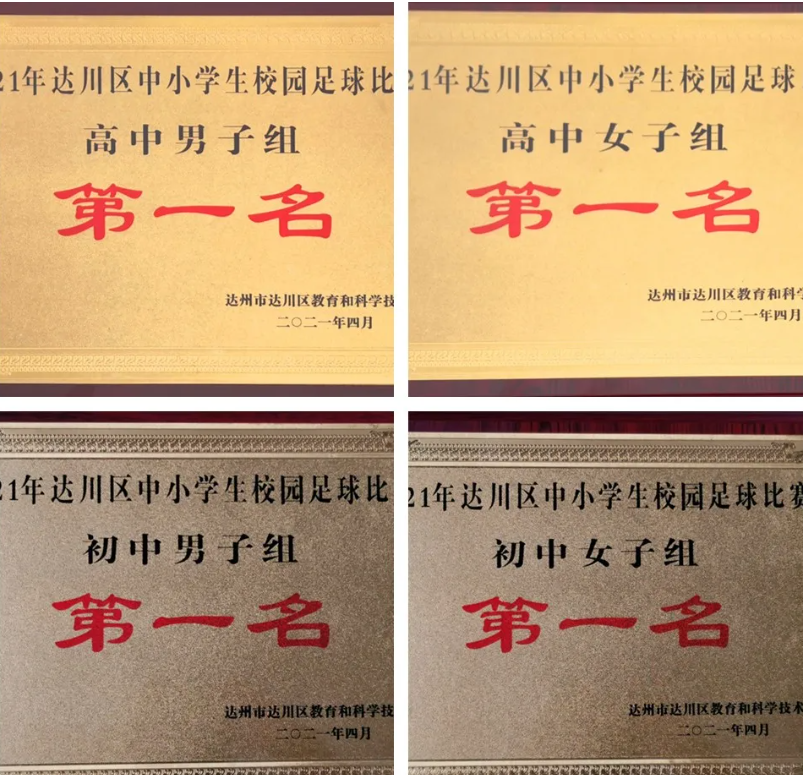 四川先锋网消息(欧述平)4月24日,历时7天的2021年达川区中小学生校园足球比赛落下帷幕。达州中学足球代表队一路过关斩将,以全胜战绩囊括初高中男、女组别全部四项冠军,并荣获“优秀组织奖”。