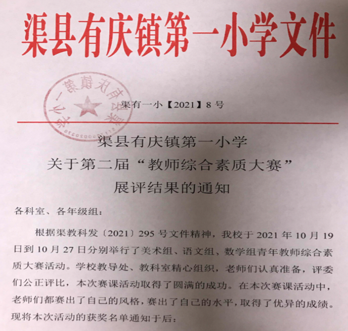 四川先锋网消息 十月好秋,桂香满盈。为全面落实教育评价改革和“双减”政策,努力实现“高效课堂”,促进青年教师的专业化成长,提高教育教学质量,10月14日—10月27日,渠县有庆镇第一小学举行了第二届青年教师综合素质大赛。周亚兰等十名青年教师参加了语文、数学、美术等学科的比赛。