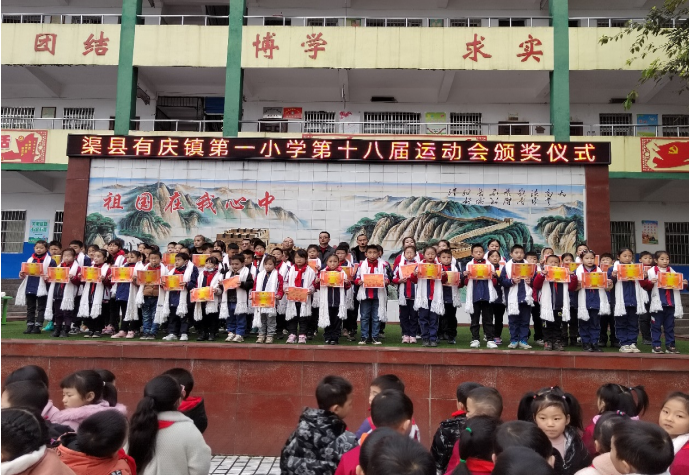 渠县有庆镇第一小学举行第十八届运动会颁奖仪式