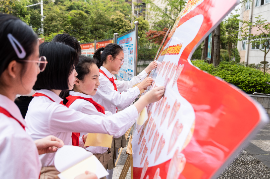 你瞧!活动伊始,少先队员代表们怀着无比激动的心情把自己的心愿卡小心粘贴在展板上,一张张灿烂的笑脸对未来充满了美好的憧憬。