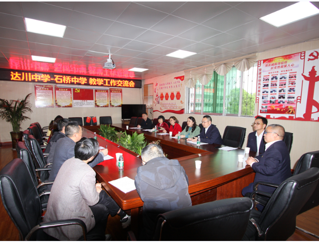 达川中学党建办副主任柏小莉和初一年级组副主任况庆红听了石桥中学汪婷老师现场授课《老王》后,进行了教学交流座谈。会上,柏小莉和况庆红对汪婷老师扎实的基本功、对教材的认真解读、对教学重点的准确把握等给予充分的肯定,并就优化教学设计、课堂结构和学生学习自主性的激发等方面提出了意见和建议。达川中学政教主任吴志德在详细了解该校学生德育工作开展情况后,与该校政教工作管理人员就学生行为习惯养成等做了交流和探讨。达川中学负责心理健康教育的政教副主任蒋玉和专业心理教师周智辉详细查阅了石桥中学学生心理筛查报告资料,就合理设计心理筛查量表和科学实施心理筛查与该校老师进行了交流。达川中学招生办主任杨华与石桥中学办公室相关人员针对该校网站和公众号管理,以及学校宣传阵地建设、宣传平台运用与信息传播等做了交流。