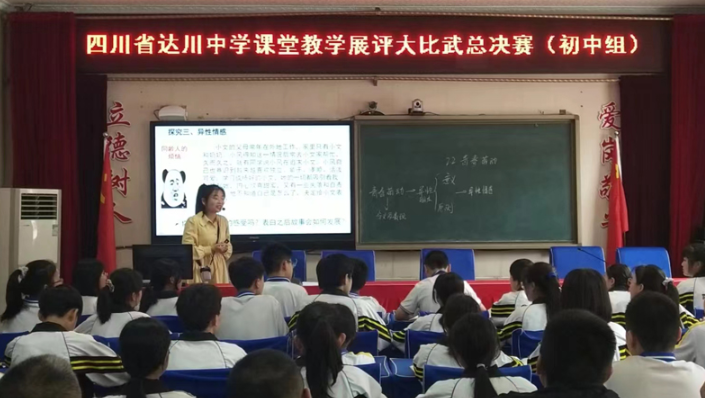 5月份,课堂教学展评大比武进入学校赛课阶段。首先,由学科主任组成评委通过说课进行第一轮评选。5月11号、12号初中高中分别在华蜀校区视频会议室开展了说课活动,前五名晋级学校总决赛。5月19号,进入总决赛的选手参与带班上课竞赛。初中组在华蜀校区视频会议室,高中组在三里校区致远楼4-5教室分别同时进行。初中高中组各五位老师分别献上了语文、政治、英语、生物、地理、物理、化学等十堂精彩的展评课。总决赛初中组评委由各学科主任担任,高中组评委分别邀请达州市教科所、友邻中学的专家和一线知名教师担任。与会评委对晋级总决赛选手的展评课给予了高度评价和肯定,一致认为达川中学教学教研工作扎实有效,参赛教师专业功底深厚、学科素养强、教学理念前沿、教学方法新颖。
