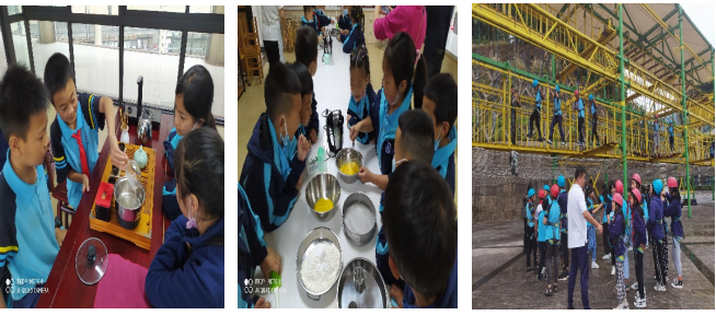 研学期间,全体学生根据年龄大小被编成六个营队,在基地教官的带领下开展了丰富多彩的实践课程:植物拓染、面具制作、面点烘焙、布艺制作、茶艺、军事射击、高空攀爬等。茶艺课上,老师带领学生学茶艺,品茶味,悟茶道,学生们亲手泡制不同种类茶品,感受中国茶文化的博大精深;面点烘焙课,“小厨师”们洗手挽袖,和面、揣面、擀面像模像样,新鲜出炉的糕点生动诠释了劳动创造美好生活的真谛;高空攀爬课,无论男生女生,个个摩拳擦掌,跃跃欲试,如展翅雏鹰向着更高更强的目标勇往直前,彰显出强国有我的少年壮志! 一天的研学实践虽然短暂,但却秩序井然。学生们全情投入,勇于实践,开心快乐,学有所获,活动取得了圆满成功。