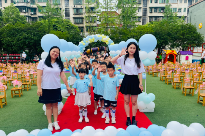 彩色的气球、动感的音乐、艳丽的花朵,夏日校园成了欢乐的海洋。6月21日上午,广汉市第三幼儿园主题为“快乐、感恩、飞翔”的大班毕业典礼举行,200余名幼儿和16名家长代表参加。这也是该园夯实“幼小衔接”,助力幼儿顺畅成长的内容之一。