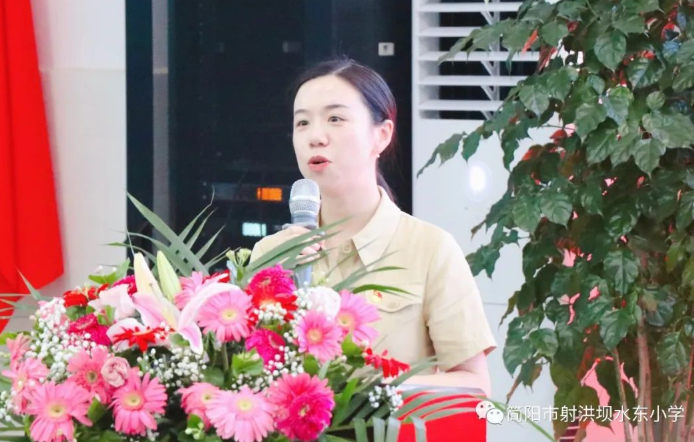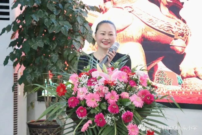 活动接近尾声,成都市十四次党代会代表、简阳市射洪坝街道党工委书记酉艳霜宣讲了中国共产党成都市第十四次代表大会精神。她从大会主题、指导思想、总体目标、五个必须、八个坚持、八个体会、八个坚定不移等方面进行了回顾与传达,还祝愿水东小学作为简阳标杆学校,在“老百姓家门口好学校”的道路上越走越好。